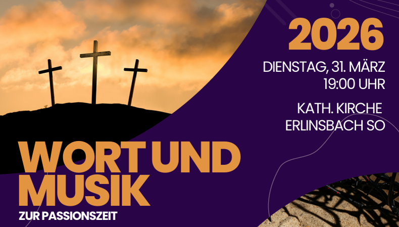 Der Kirchenchor Erlinsbach führt mit Gastsänger:innen die «Icker Passion» von Michael Schmoll auf. Der Chor erzählt die Leidensgeschichte nach dem Lukasevangelium, begleitet von einem kleinen Instrumentalensemble. Dazu wird Father Bernard Texte zur Vertiefung lesen.